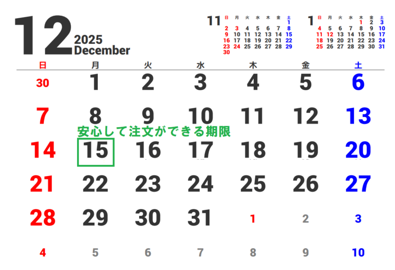 | 年末配送 | 注文期限の目安 | 年始配送 | |