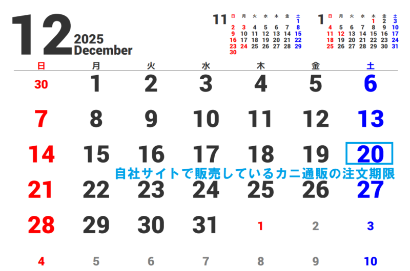 ・12月20日(土)・・・自社サイトで販売されているカニ通販の注文期限日