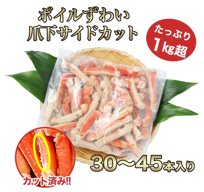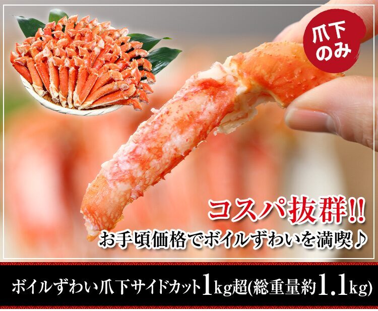 1位:ボイルずわい爪下サイドカット1kg超(総重量約1.1kg)【販売元:かに本舗、セール価格:2,980円】