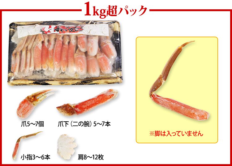 | セット内容 | 生ずわい肩脚4~6肩(1kg超) | ||