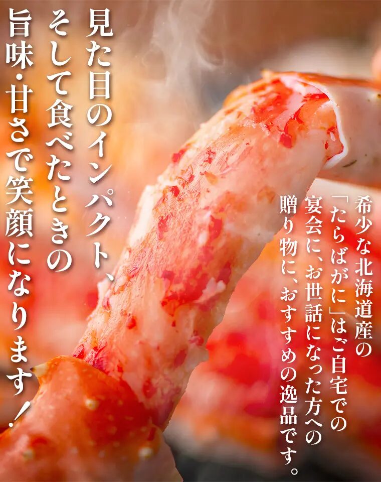 タラバガニの水揚げ量が減っている中、希少な北海道産のタラバガニです。その中でも特大サイズのタラバガニ姿をお求めの方や贈答用にとお考えの方におすすめです。